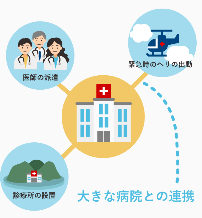 都道府県知事が指定し、無医地区等への巡回診療、へき地診療所への代診医派遣、へき地医療従事者に対する研修、遠隔診療支援等の診療支援事業を行いながら、へき地地域からの入院患者の受け入れ等を行う病院です。過疎地域の中核病院であることが多く、救急医療、専門医療を担いつつへき地の支援も行うといった幅広い役割が求められますが、医師や診療科の偏在の余波を受け、へき地医療拠点病院においても医師不足が問題となっています。